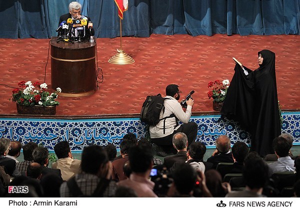 در بین سخنان جلیلی در دانشگاه تهران یکی از دختران دانشجو با در دست داشتن قرآن مقابل وی آمد و از او خواست که در مقابل دانشجویان به این قرآن قسم بخورد که جانفدای سید علی باشد؛ که جلیلی نیز در پاسخ گفت: انشاءالله همینطور هستیم.