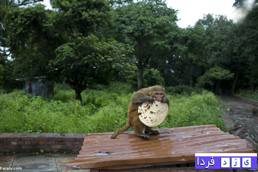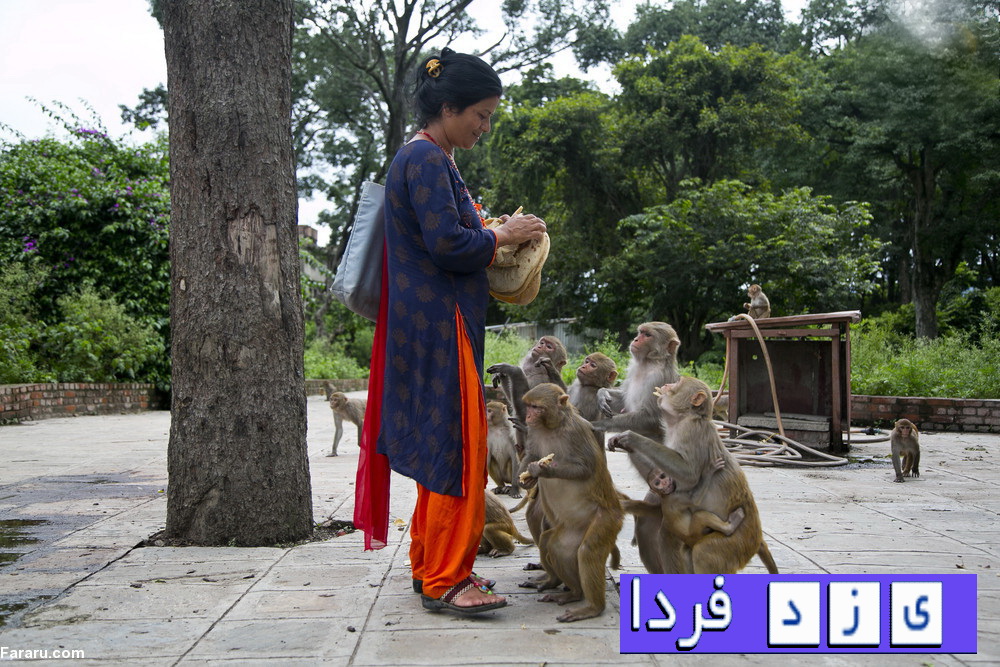 میمون هایی که نان تافتون می خورند البته با همت زن نپالی!!!تصاویر