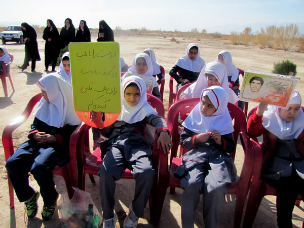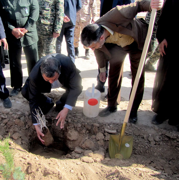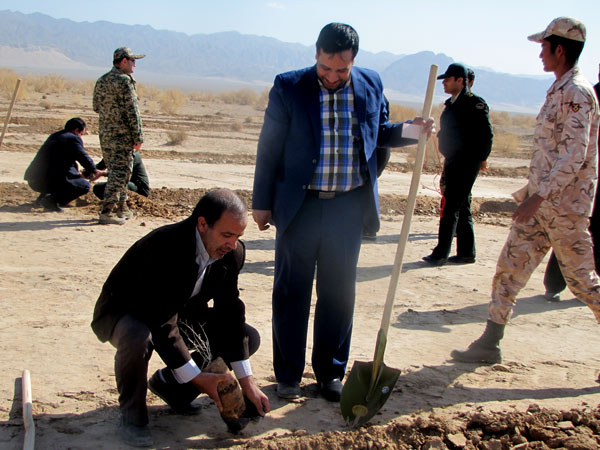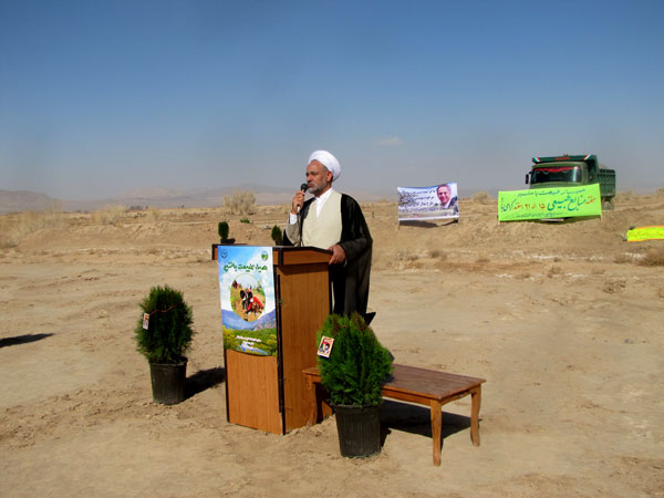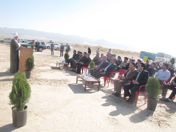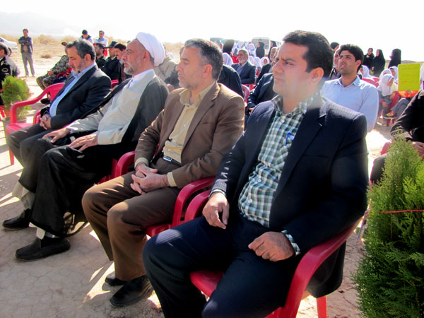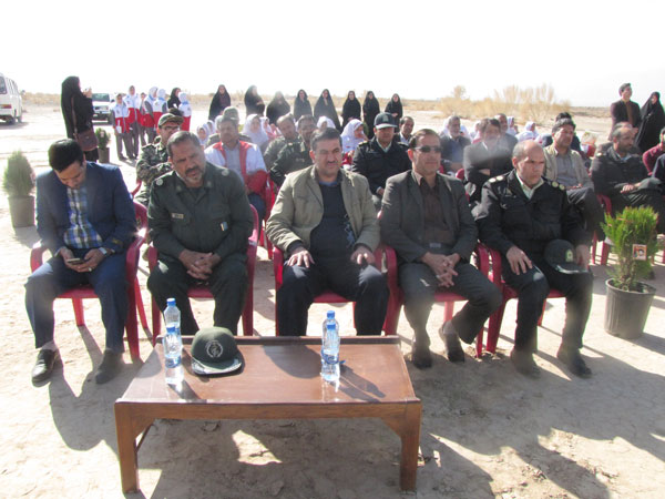 در این مراسم فرماندار و امام جمعه و مسئولان و دانش آموزان به یاد 156 شهید گلگون کفن شهرستان 156 نهال تاغ و کاج غرس کردند و هفته منابع طبیعی راگرامی داشتند .