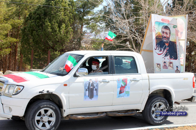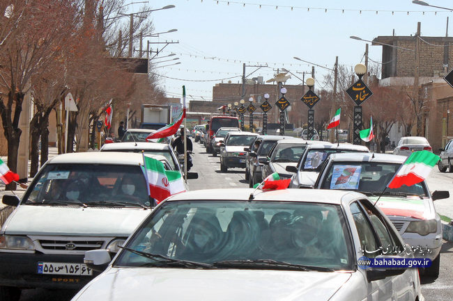 این مراسم که به صورت خودرویی و موتوری برگزار گردید از حرم شهدای گمنام بهاباد آغاز و طی مسیر خیابان امام خمینی(ره) تا گلزار شهدای بهاباد پایان یافت.