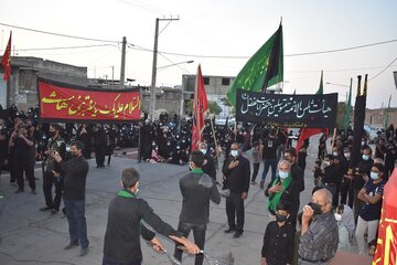 رعایت فاصله گذاری، استفاده از ماسک، ضد عفونی کردن و عدم اجتماع و ازدحام نکات مهمی است که دراین مراسم رعایت شد. دراین مراسم مردم به عزاداری وسینه وزنجیرزنی دررثای شهیدان دشت کربلا و حضرت ابا عبدالله الحسین (ع) پرداختند و اشک ماتم ریختند .