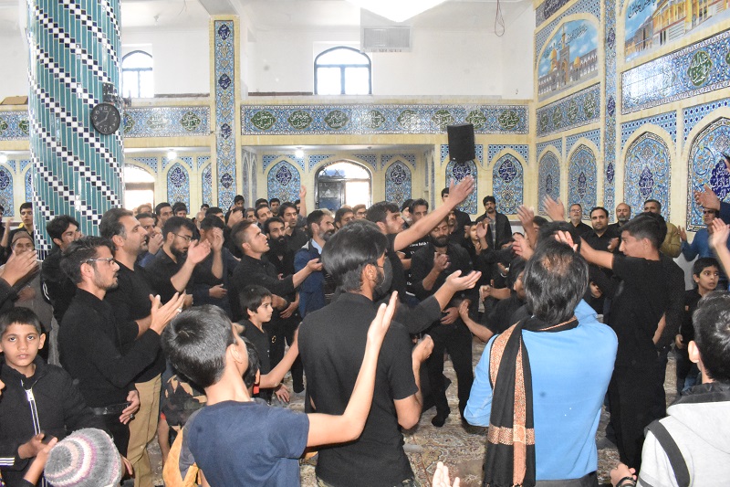 در این مراسم معنوی، هیئت‌های عزادار و سوگواران حضرت فاطمه (س)، در رثای مظلومیت مادر امامت و همسر ولایت حضرت فاطمه زهرا (س) اشک ماتم ریختند وبه عزاداری وسینه زنی پرداختند .