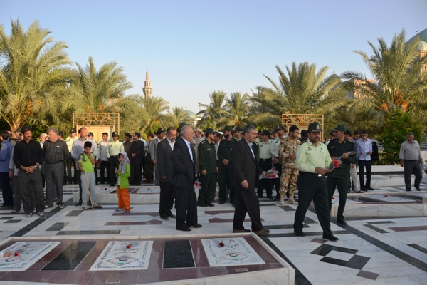 طبس- سرپرستی یزدفردا: در نهمین روز از دهه کرامت، گلزار شهدای آستان مبارک امامزاده حسین بن موسی الکاظم(ع) طبس شاهد حضور مسئولان محلی شهرستان در آئین غبارروبی مزار شهدا و ادای احترام به ساحت ملکوتی اسطوره های مقاومت و ایثار بود.