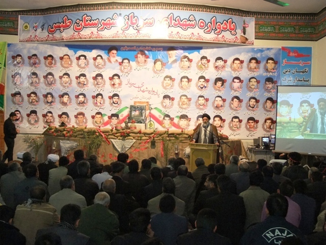 طبس- سرپرستی یزدفردا: نخستین یادواره ۵۷ شهید سرباز شهرستان طبس با حضور فرمانده انتظامی استان یزد، مسئول نهاد نمایندگی ولی فقیه در سپاه منطقه یزد، امام جمعه، فرماندار و جمعی از مسئولان شهرستان طبس، خانواده معظم شهدا و جمع کثیری از مردم در محل هیئت مذهبی صاحب الزمانی(عج) طبس برگزار شد.