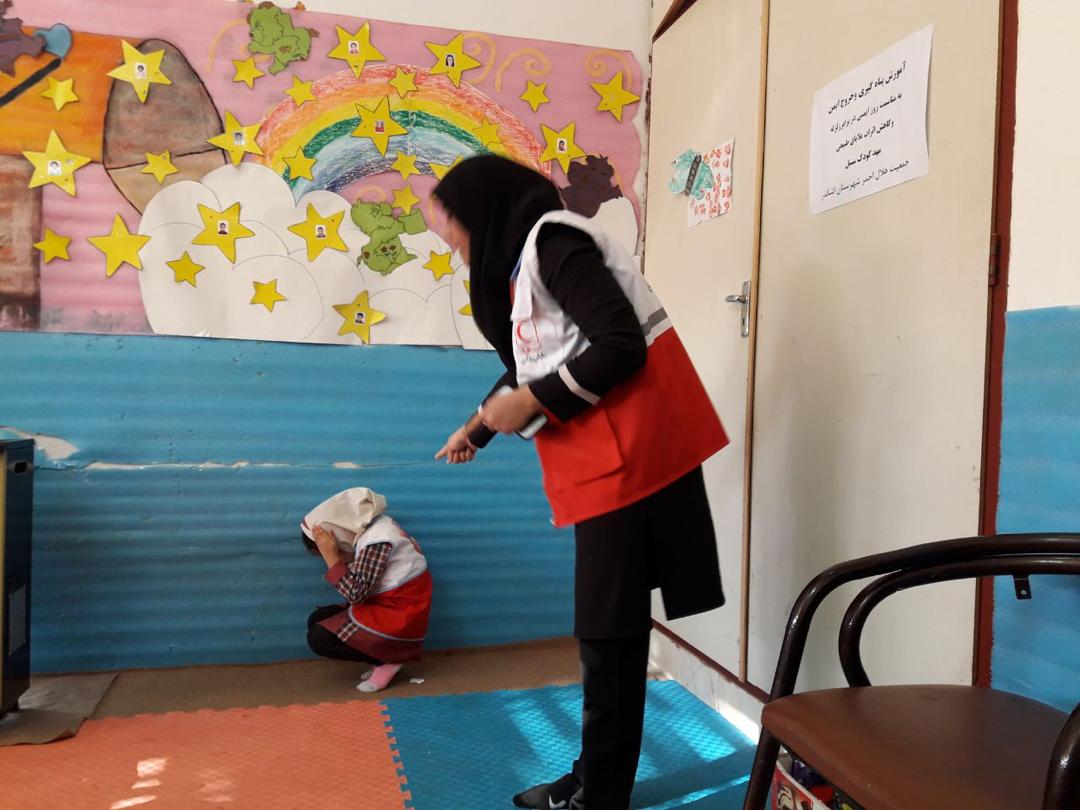 مانور زلزله توسط اعضای غنچه های هلال احمر در شهرستان اشکذر برگزار شد .