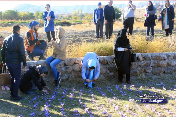 در حاشیه جشن شکرانه برداشت زعفران طلای سرخ بهاباد، فرماندار بهاباد و جمعی از مسئولین، گردشگران، دانش آموزان و اقشار مختلف مردم با حضور در مزارع زعفران روستای آسفیچ از نزدیک با دیدن رنگ و استشمام بوی مهر انگیز زعفران در این رویداد بیادماندی شرکت نمودند.