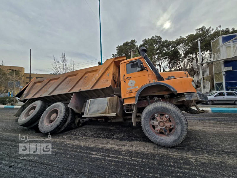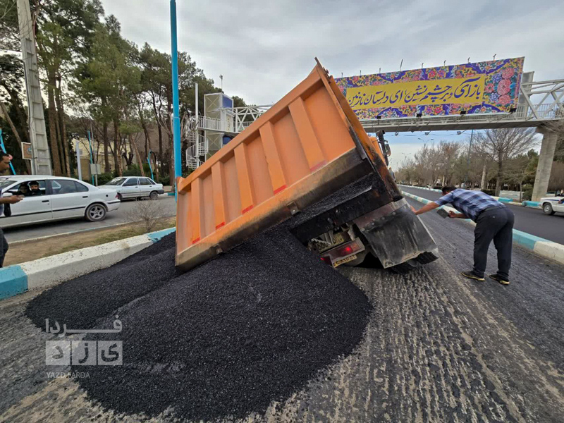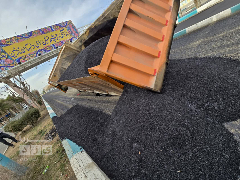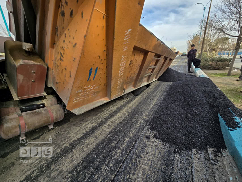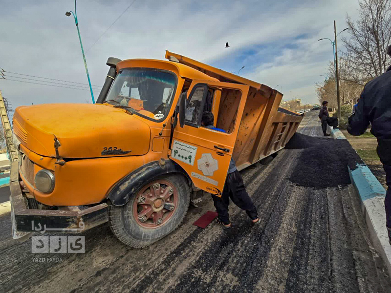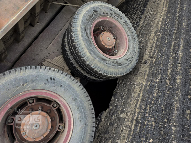 کامیون آسفالتی که در خیابان مطهری یزد در حال تردد بود در زمین فرو رفت.