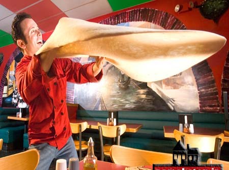او خمیری بوزن 500 گرم ( 17.6 اونس ) را به مدت دو دقیقه روی دستانش چرخاند تا توانست نانی به قطر 84.33 سانتی متر بسازد