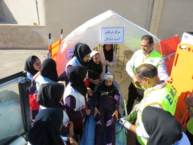 رئیس جمعیت هلال احمر شهرستان تفت گفت : این مانور با همکاری واحد جوانان و امداد و نجات جمعیت هلال احمر شهرستان ، آموزش و پرورش ، اورژانس ، آتش نشانی ، مدیریت بحران و تیم آنست امداد و نجات جمعیت هلال احمر استان و .... در مدرسه دبیرستان دخترانه شهید دهقانی با حضور اعضا جوانان و اعضا کانون دانش آموزی هلال احمر این مدرسه بصورت نمادین برگزار گردید.