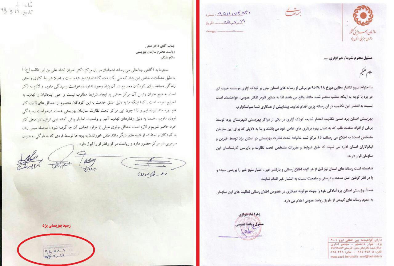 حال اداره بهزیستی استان یزد اقدام به انتشار تکذیبه ای کرده است.