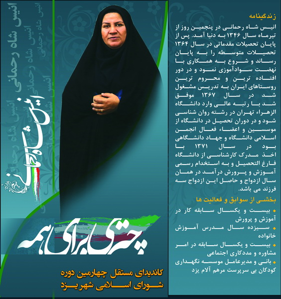 انیس شاه رحمانی نامزد چهارمین دوره انتخابات شورای اسلامی شهر یزد