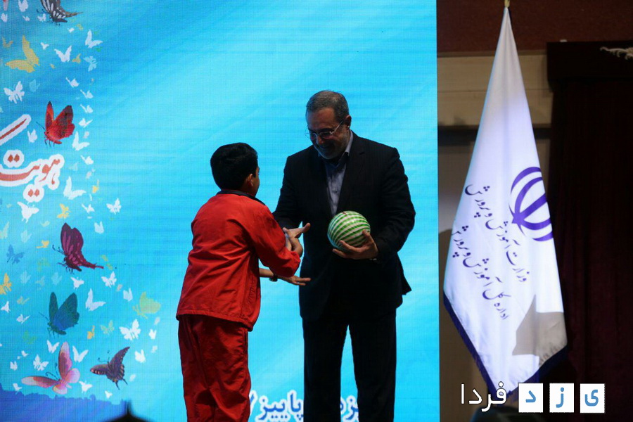 هدیه ی توپ پلاستیکی اسماعیلی دانش آموز هنرمند یزدی به وزیر آموزش و پرورش