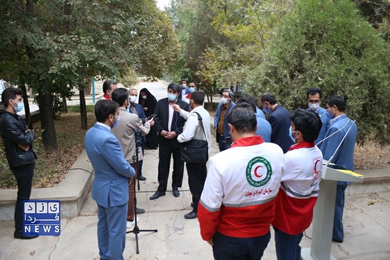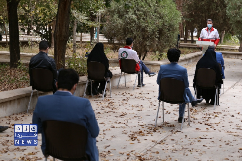 سلسله نشستهای خبری ستاد پیشگیری و مقابله با کرونا استان چهارشنبه بیست و یکم آبان ماه با حضور دکتر محسن حرازی زاده مدیر عامل جمعیت هلال احمر استان و جمعی از اصحاب رسانه در محوطه باز استانداری یزد برگزار شد.