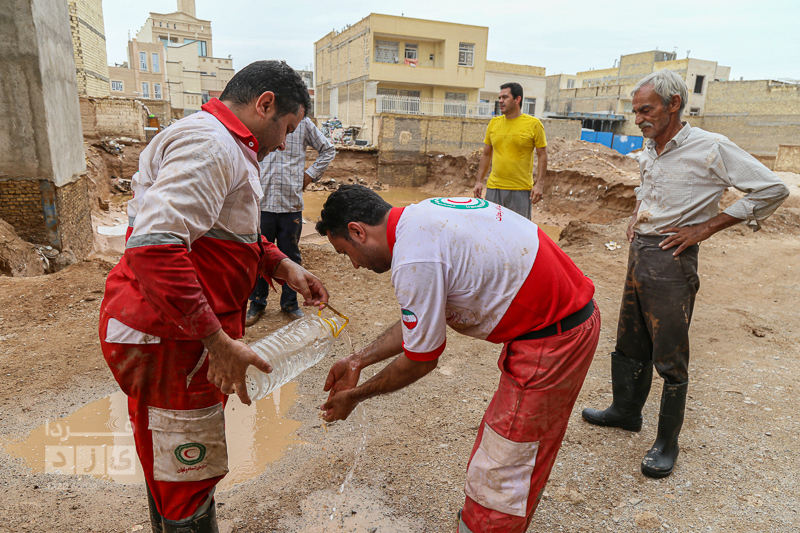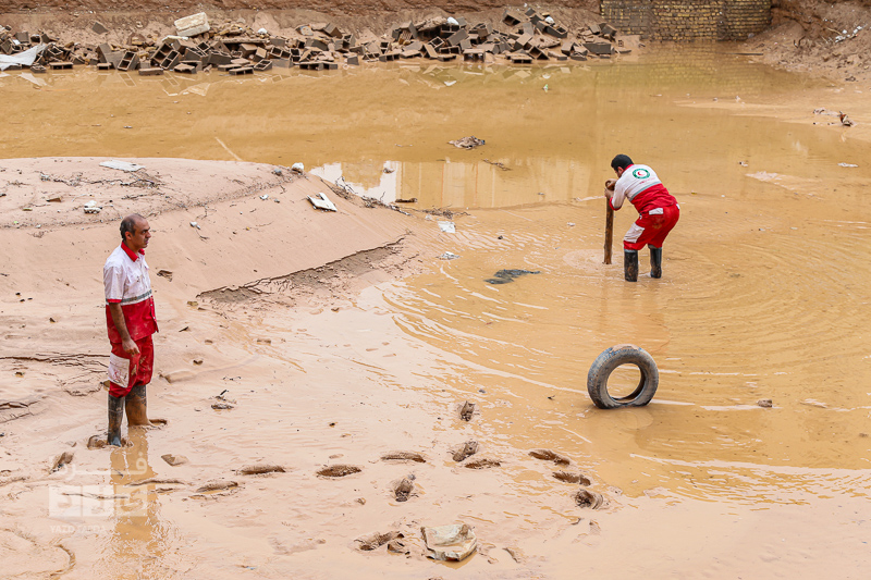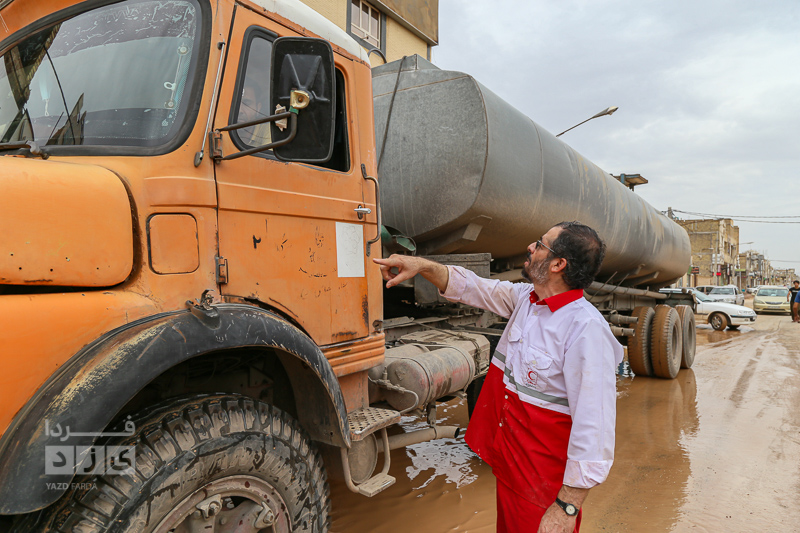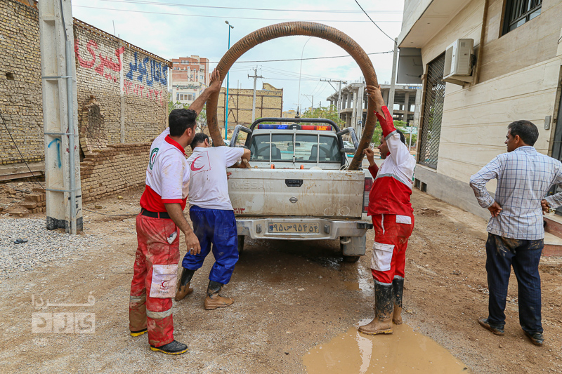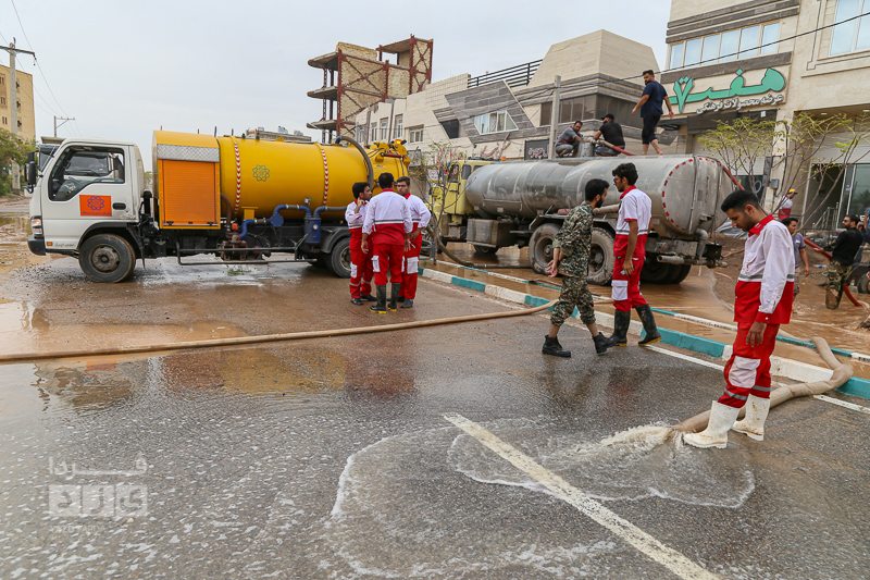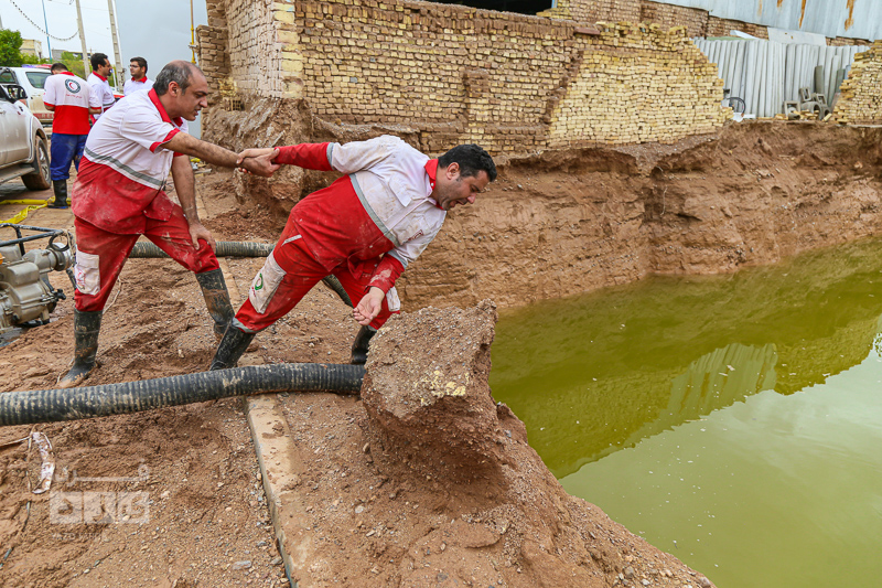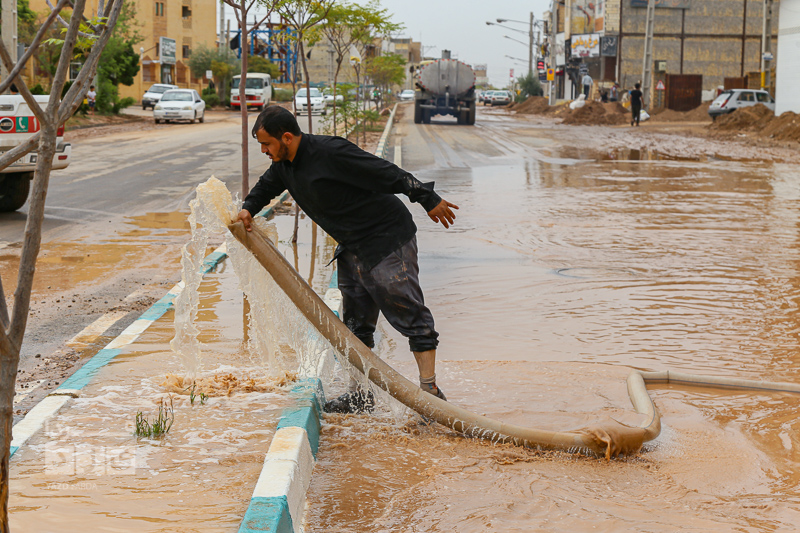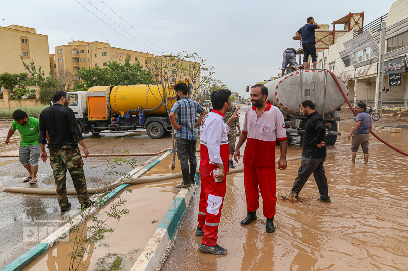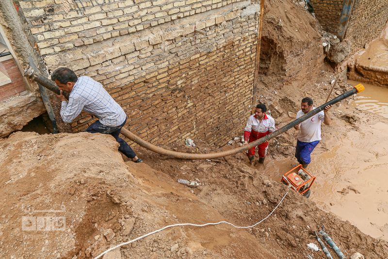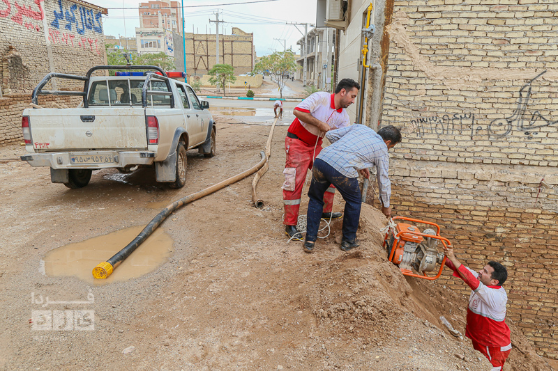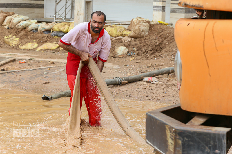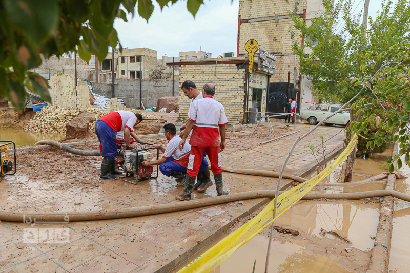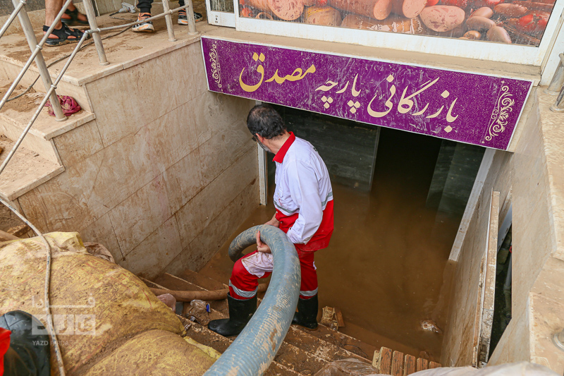 تلاش نجاتگران هلال احمر برای تخلیه اماکن آب گرفته سطح شهر یزد