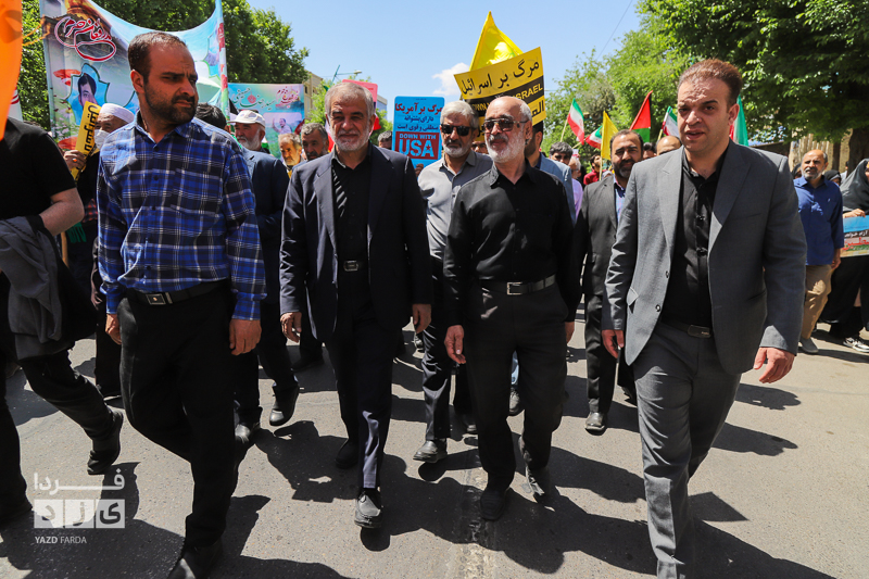 راهپیمایی روز جهانی قدس ظهر امروز جمعه با حضور گسترده مردم از میدان شهید بهشتی تا مسجد ملااسماعیل یزد (نماز جمعه) برگزار شد.