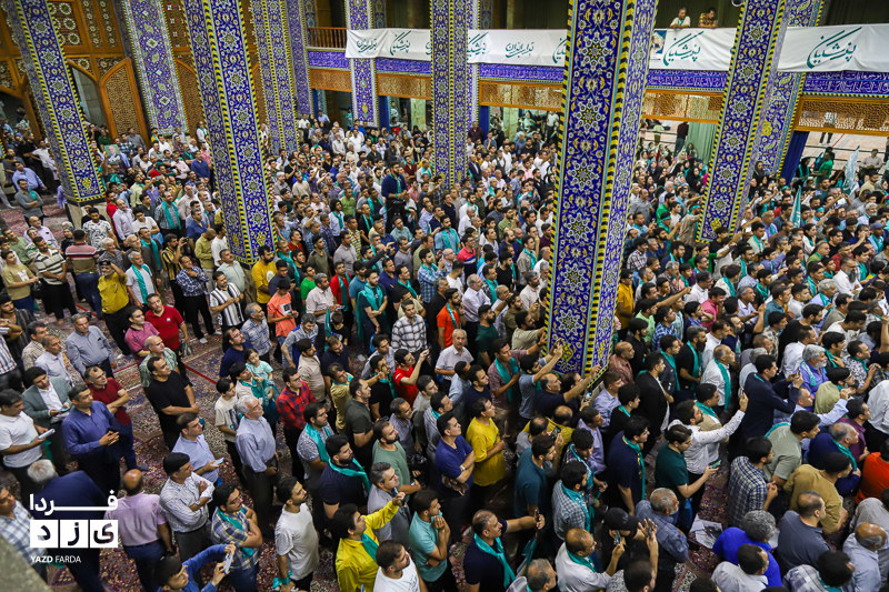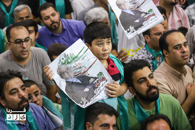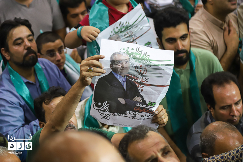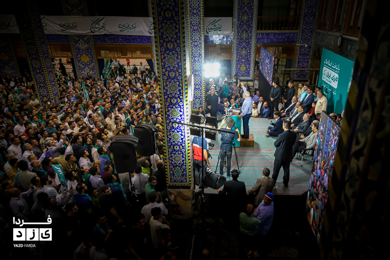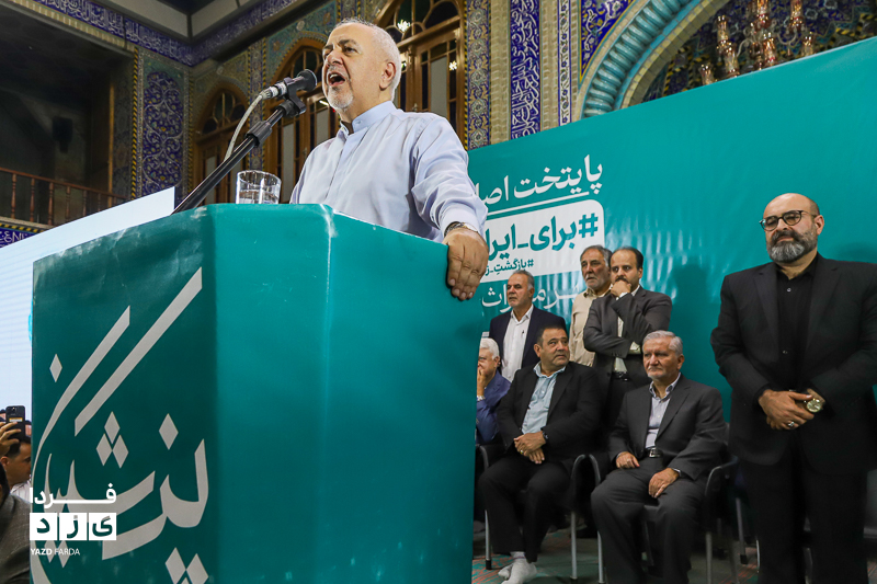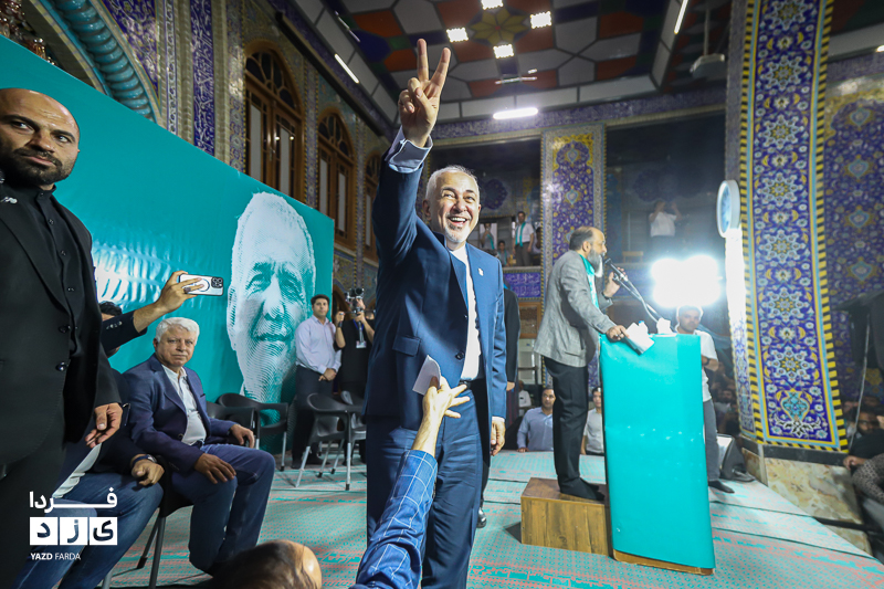 محمد جواد ظریف وزیر امور خارجه سابق ایران، عصر امروز چهارشنبه ۱۳ تیرماه ۱۴۰۳ در جمع هواداران دکتر پزشکیان، کاندیدای چهاردهمین دوره انتخابات ریاست جمهوری در مسجد روضه محمدیه (حظیره) یزد به سخنرانی پرداخت.